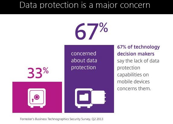 Ezek az új munkavégzési módok felborítják a hálózatbiztonságon és az alkalmazások és készülékek biztosításának hálózatbiztonságán és teljes vállalati ellenőrzésén alapuló hagyományos stratégiákat, sok álmatlan éjszakát okozva az IT-szakembereknek. A technológiai döntéshozók 67 százaléka nyilatkozott úgy, hogy aggasztja a mobilkészülékeken használható adatvédelmi szolgáltatások hiánya.